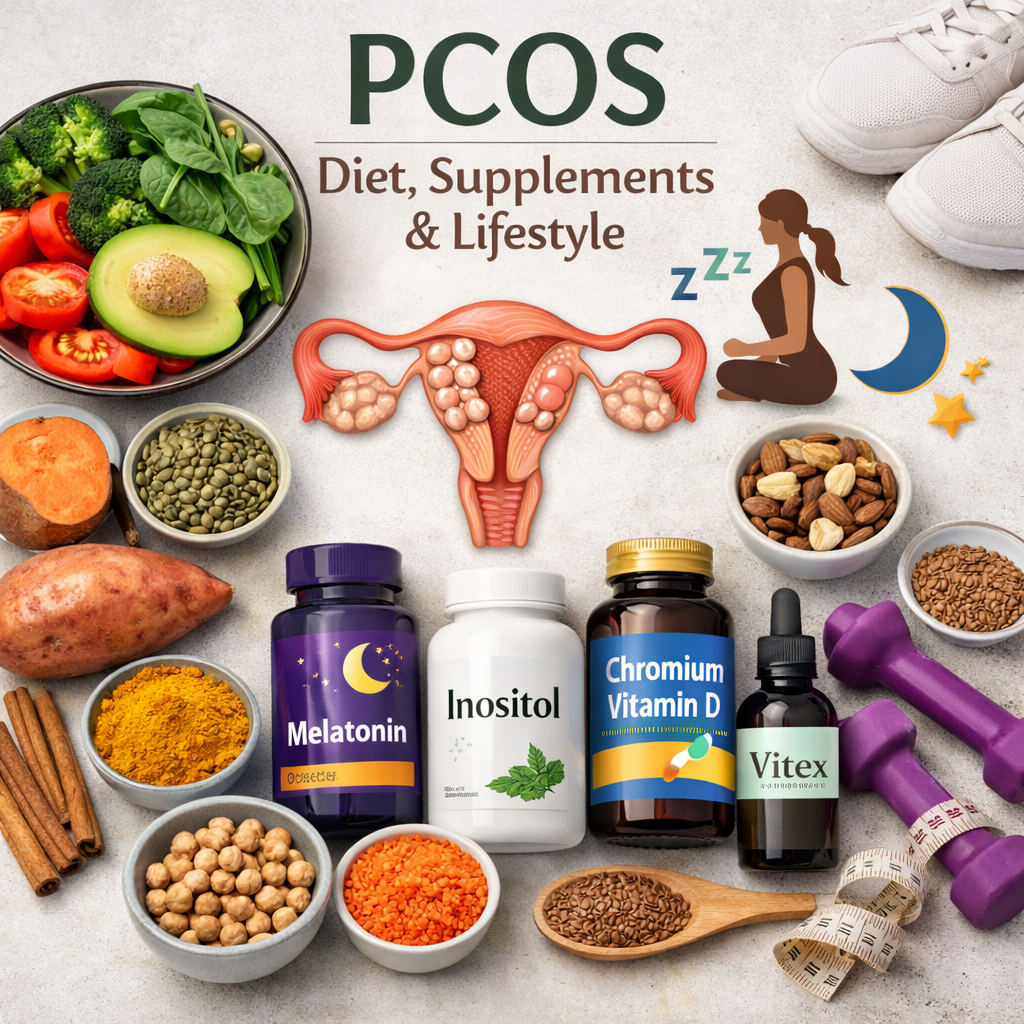 باختصار، متلازمة تكيس المبايض حالة معقدة متعددة العوامل، لكن تحسين التغذية مع التركيز على أطعمة البحر الأبيض المتوسط، ممارسة الرياضة بانتظام، تنظيم النوم، تناول المكملات الغذائية مثل الاينوزيتول، الميلاتونين، الكروميوم، وفيتامين د، بالإضافة إلى الأعشاب الطبيعية مثل الكركمين، القرفة، وكف مريم، يمكن أن يحسن أعراض المتلازمة بشكل كبير، ويقلل من المخاطر الصحية طويلة الأمد.